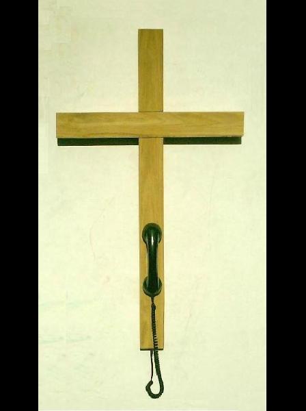 < Standleitung Assemblage; Eiche, Telefonhörer